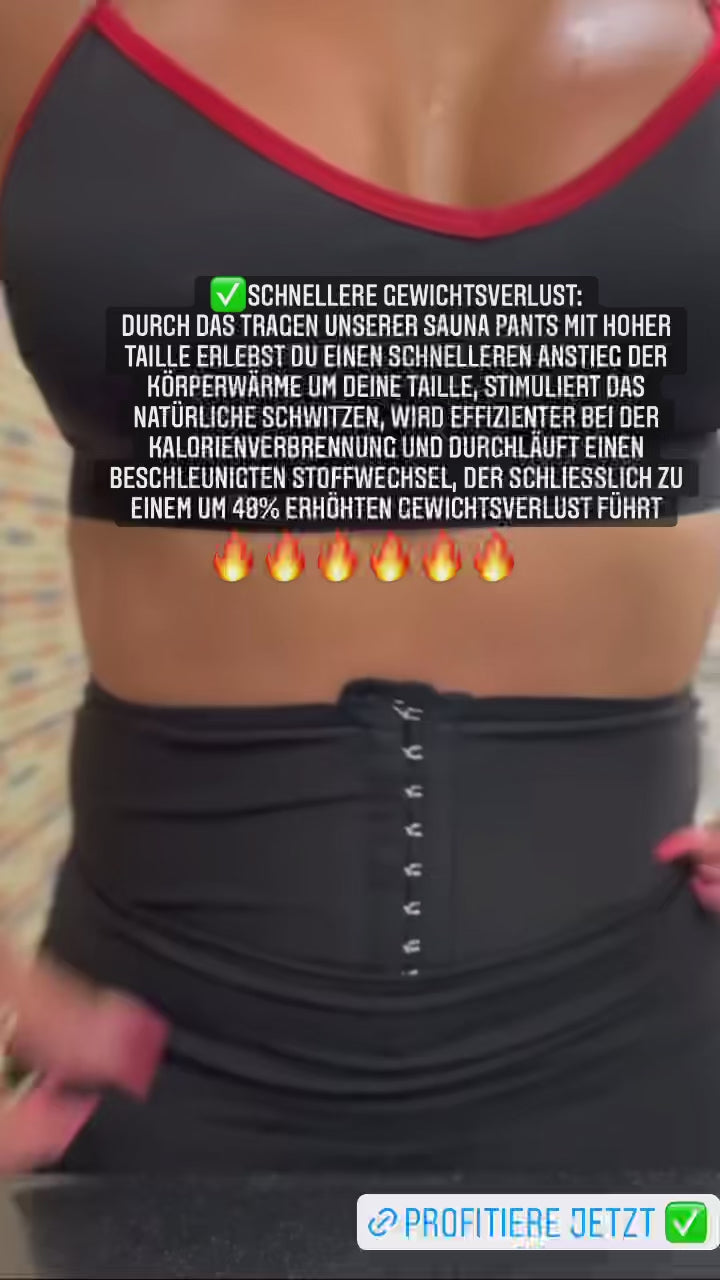 Mit Sauna Pants bist Du ideal fürs Bodyshaping ausgerüstet. Diese Leggings ist dank ihrem integrierten Bauchweg-Taillentrainer + Anti Cellulite der perfekte Helfer beim Abnehmen und Sporttreiben. Die Thermo-Beschichtung auf der Innenseite (von Taille bis ganz unten) der Schwitzhose sorgt dafür, dass Du beim Training bis zu 10 Mal mehr schwitzt, als normalerweise. Sei es beim Krafttraining, beim Joggen, beim Wandern oder bei anderen sportlichen Aktivitäten: Mit dieser Leggings holst du das Maximum aus Dir heraus!