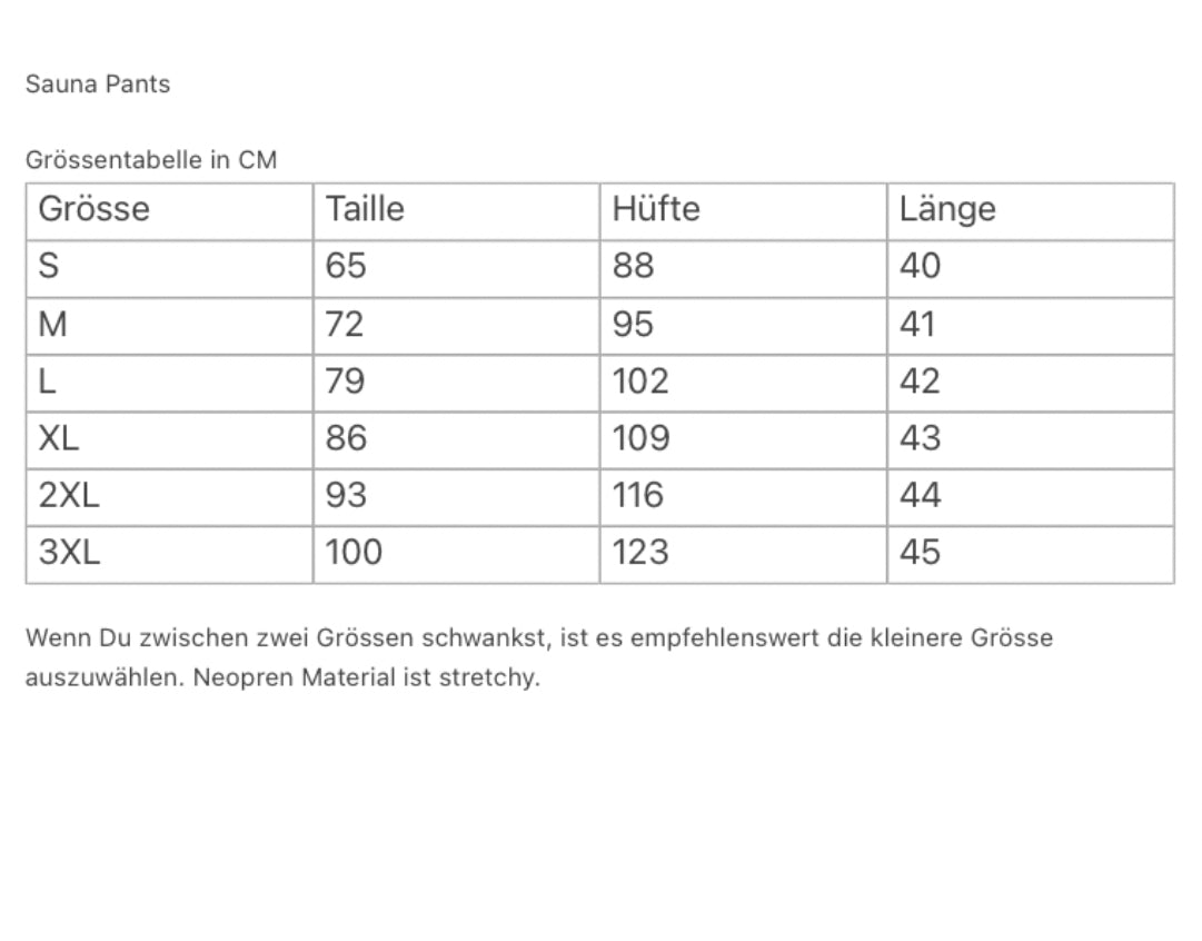 Wir verwenden eine fortschrittliche Stoffzusammensetzung aus Neopren, Elasthan & Polyurethan. Das Innenfutter von oben bis unten besteht aus Polyurethan, das eine hervorragende Wärmeisolierung darstellt. Nach längerem Gebrauch reduziert Sauna-Pants den Taillenumfang, glättet die Oberschenkel und formt den Po super sexy.